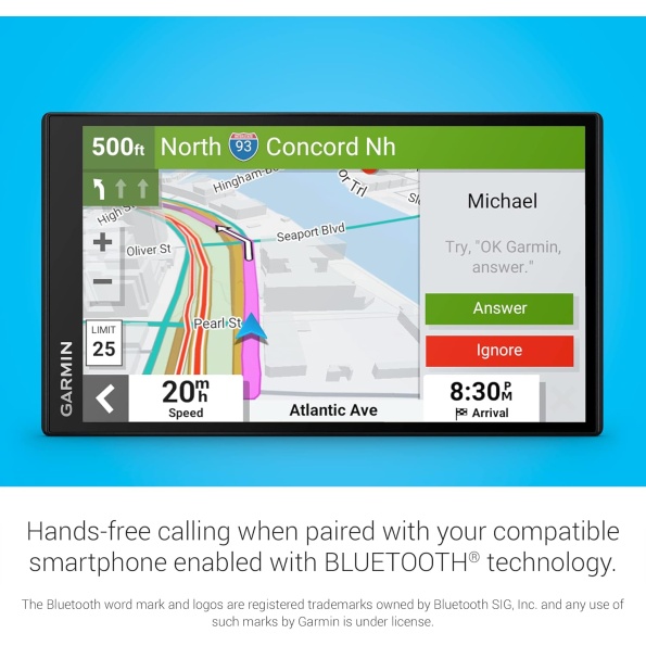 Hands-free calling when paired with your compatible smartphone with BLUETOOTH technology and convenient Garmin voice assist lets you ask for directions to places you want to go